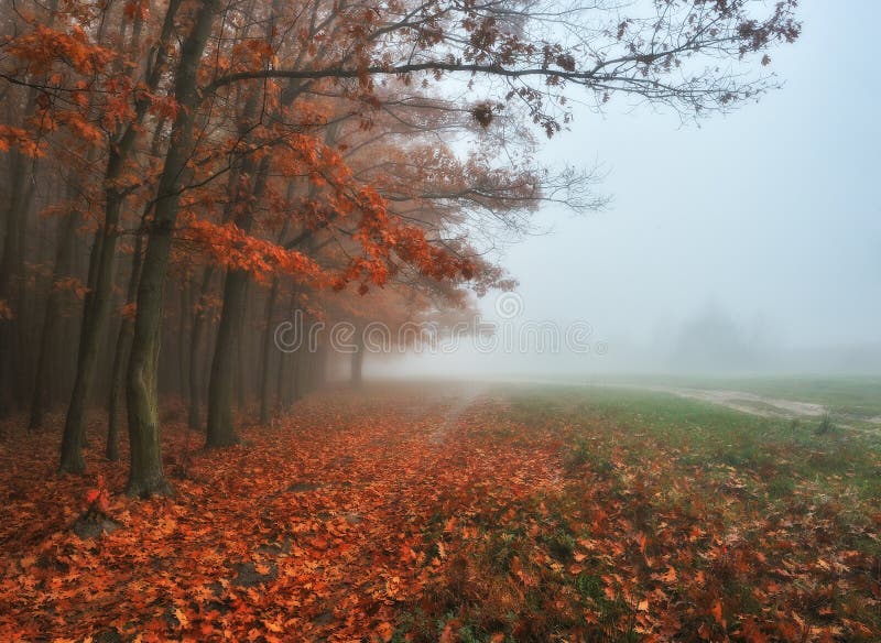 De herfst bos mistige ochtend in het feebos. De herfst bos mistige ochtend in de fee bos schilderachtige ochtend