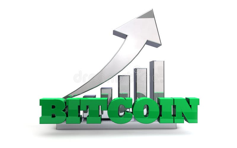 De Munt van BITCOIN Blockchain - Verhoging van Waarde. Het woord BITCOIN gaf in 3D op een witte achtergrond met omhooggaande pijl en grafiek terug