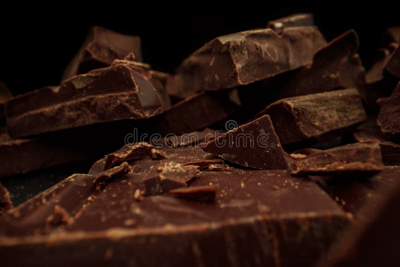 Gebroken balken voor donkere chocolade. macrolens