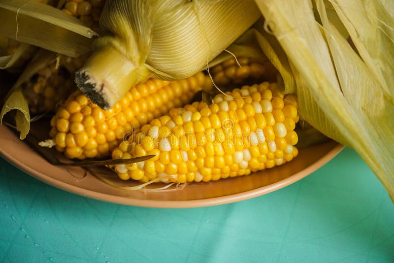 Gekookte maïs verdeelde brokken. Gekookte maïs in brokken royalty-vrije stock afbeelding Gekookte maïs verdeelde brokken. Gekookte maïs in brokken