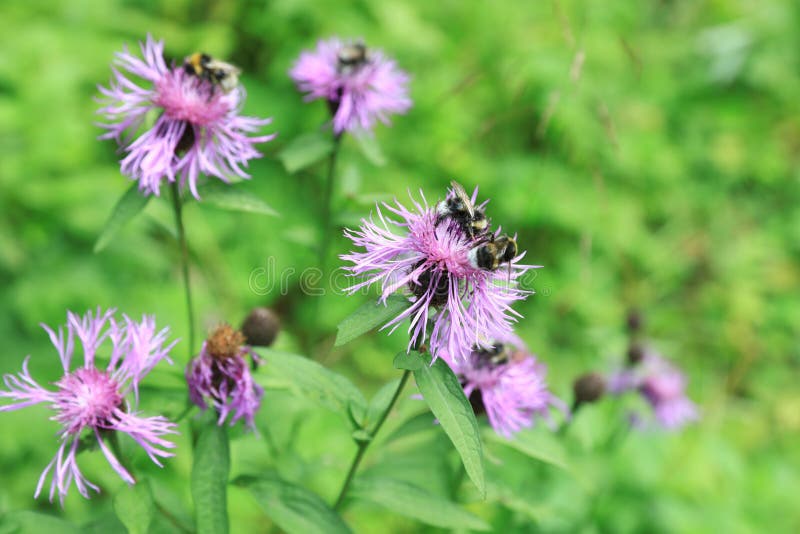 Drukke hommel aan het werk met een bloem. Centaurea Scabiosa L of grote duizendblad van het geslacht Centaurea stock foto's Drukke hommel aan het werk met een bloem. Centaurea Scabiosa L of grote duizendblad van het geslacht Centaurea