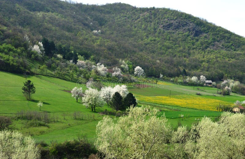 Landschap in de lentehoogtepunt van kleuren