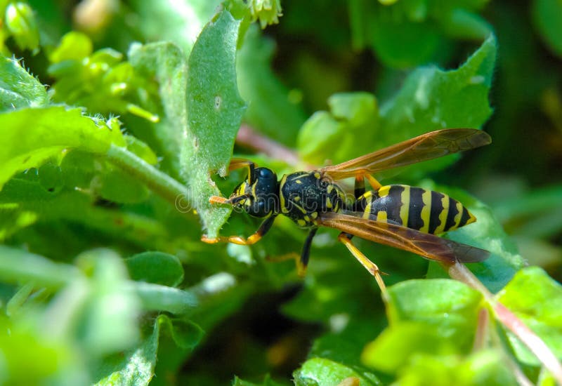 Polistes dominula a wesp op groen blad.