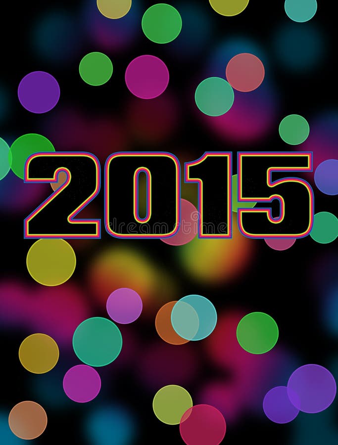 Bokehkaart van 2015. Gelukkige nieuwe jaar 2015 kaart met spectrum gekleurde bokeh achtergrond