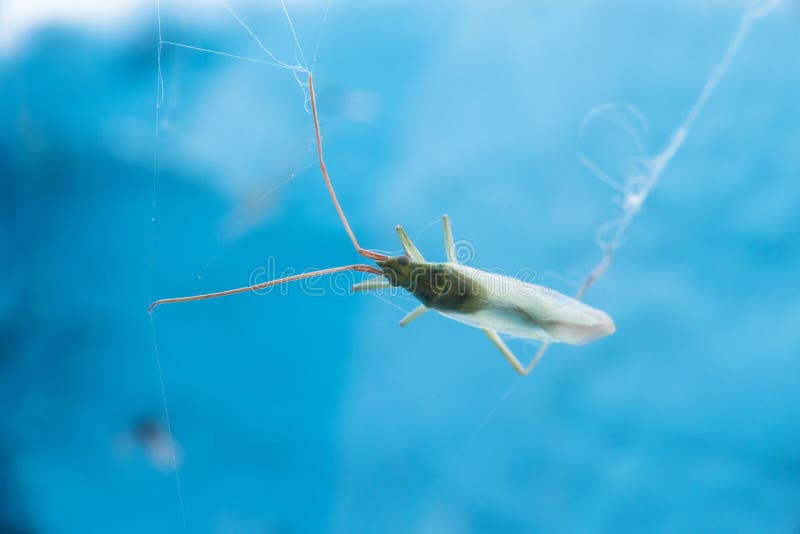 Een klein die insect, in het spin` s Web wordt verward Macro