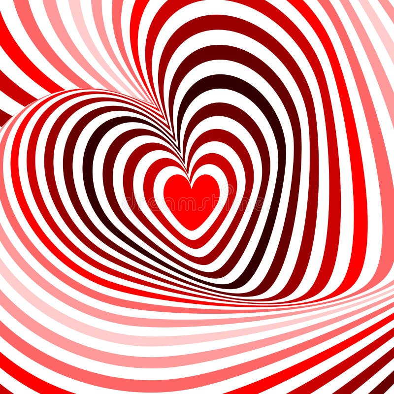 Ontwerp van harten met draaiende beweging, achtergrondillusie. Abstracte strip-torsieachtergrond. Vectorillustratie. Geen gradiënt