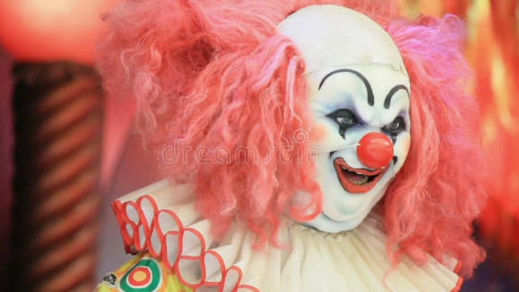 HD De gekke enge clown met kleurrijke make-up verschijnt plotseling in het kader stock footage De gekke enge clown met kleurrijke make-up verschijnt plotseling in het kader stock footage