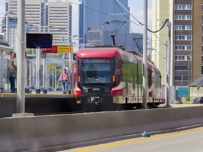 Calgary, Alberta, Canada. 8 juni 2023. Station Bridgeland en Memorial C-train